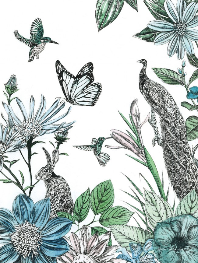 Peacock and Flowers Wall Mural by Amelia Ilangaratne