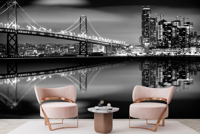 Puente de San Francisco Fotomurales Blanco y Negro Papel Pintado Horizonte Foto Decoración para el hogar