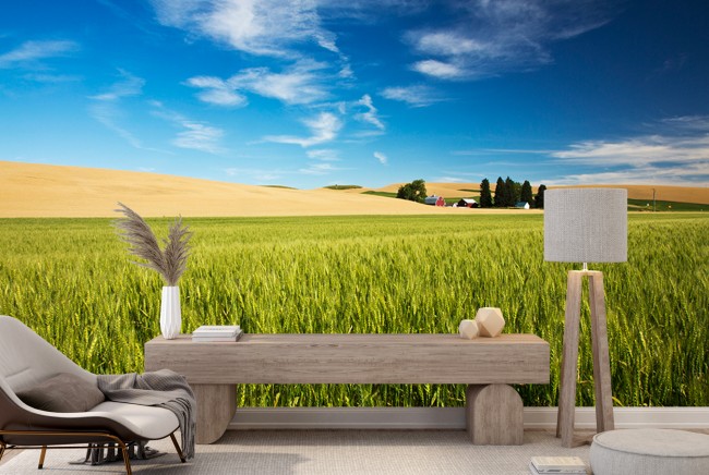 Red Barn in Fields of Wheat Wall Mural by Terry Eggers - Danita Delimont