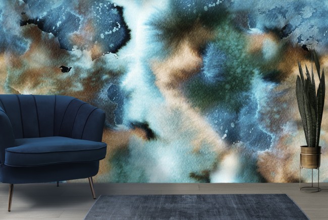 Blue Watercolour Abstract Art Wallpaper Wall Mural