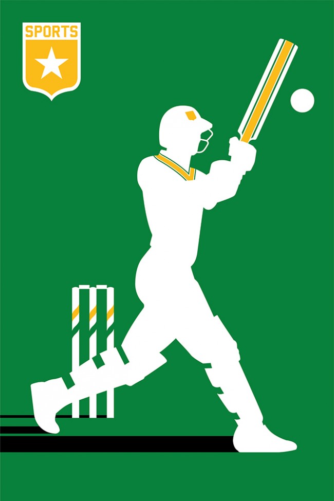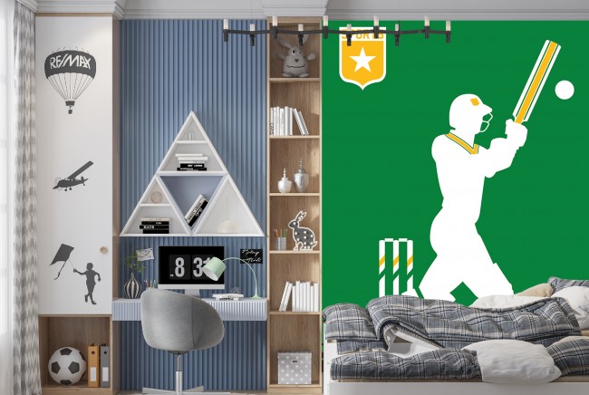 Cricketer on Green Wall Mural by Bo Lundberg