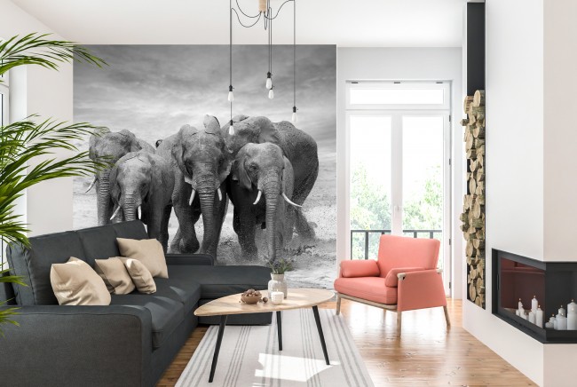 Schwarz & Weißes Wandgemälde Elefant Tapete Wohnzimmer Schlafzimmer Foto Inneneinrichtungen