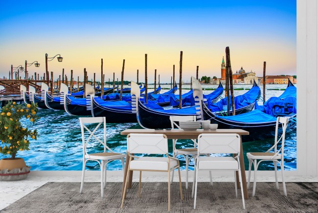 Blaue Gondeln Fototapete Venedig, Italien Tapete Schlafzimmer Wohnzimmer Foto-Dekor