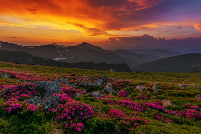 Brennender Sonnenuntergangberg Wandgemälde von Mykhaild Remenick