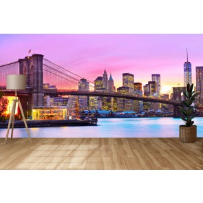 Brooklyn-Brücke Panorama Fototapete Rosa Sonnenuntergang Tapete New York Foto-Dekor
