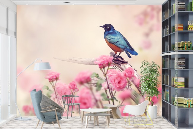 Pinke Blumen Fototapete Blauer Vogel Tapete Mädchen Schlafzimmer Foto Inneneinrichtungen