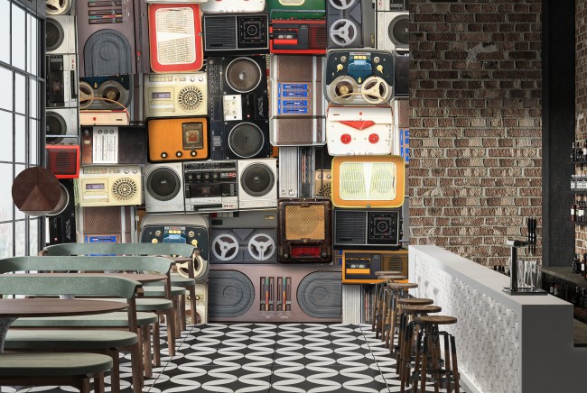- Retro Musik Fototapete Vintage Kassetten Tapete Schlafzimmer Foto Inneneinrichtungen