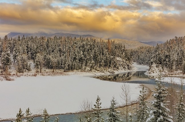 Flathead River Snow Wall Mural by Chuck Haney - Danita Delimont