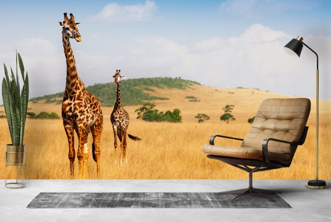 Giraffes On Safari Wallpaper Wall Mural