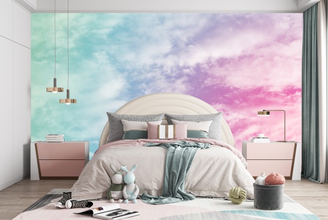Pink Blue Sky & Clouds Wallpaper Wall Mural