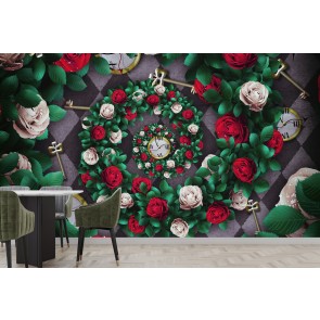 Roses Pocket Watch Alice Wonderland Wallpaper Wall Mural
