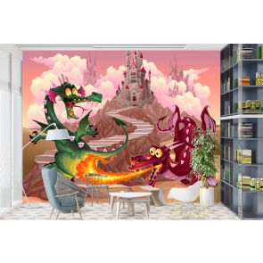 Dragon Fight At Knights Castle Wallpaper Wall Mural