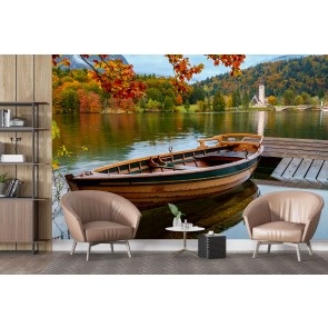 Paisaje del lago Fotomurales Árboles de otoño Papel Pintado Salón dormitorio Decoración de fotos
