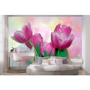 Pastel Pink Blooming Tulips Wall Mural by Deborah Sandidge - Danita Delimont