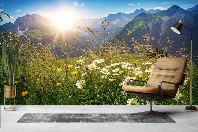 Mountain Landscape Spring Flowers Wallpaper Wall Mural