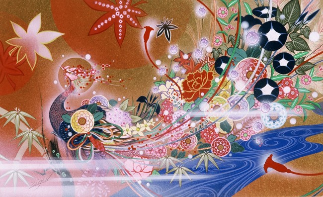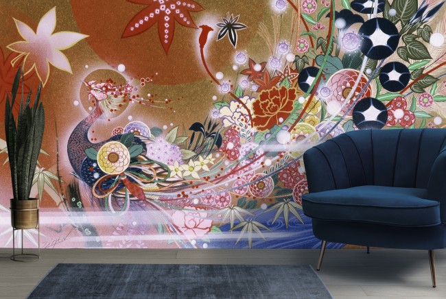 Flowers Peacock Wall Mural by Zigen Tanabe
