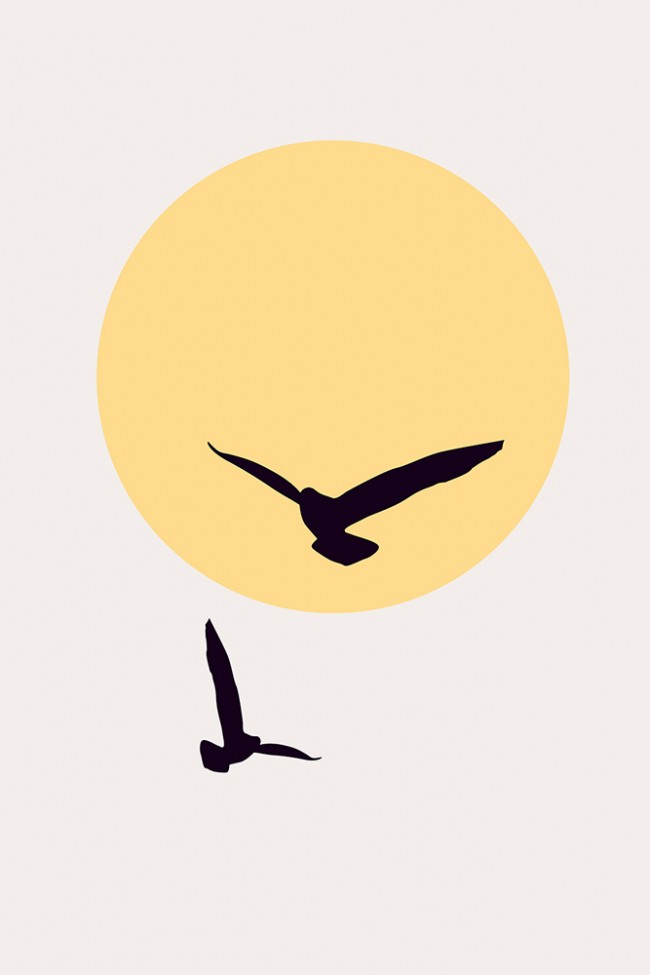 Oiseaux dans le ciel - Jaune Papier Peint Photo par BORIS DRASCHOFF