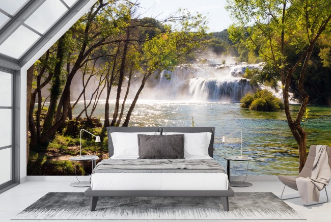 Cascade et arbres Papier Peint Photo Lac de Croatie Papier peint Salon Photo Décor à la maison