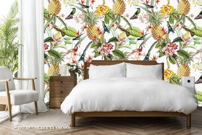 Ananas rose et oiseaux tropicaux Papier Peint Photo par Uta Naumann