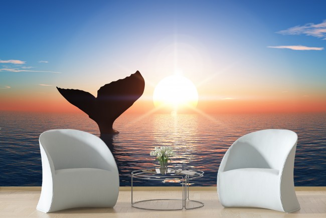 Blue Ocean Sunset Papier Peint Photo Animal de baleine Papier peint Chambre Photo Décor à la maison