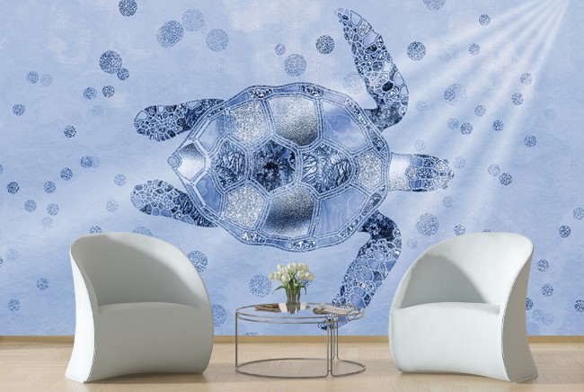 Glamour Turtle - Blue Wall Mural by Andrea Haase