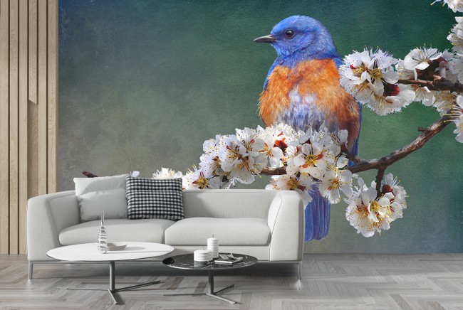 Apple Blossoms Bluebird Wall Mural by Chris Vest