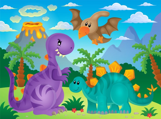 Cute Dinosaurs & Volcano Kids Wallpaper Wall Mural