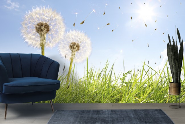 Fiori di Dente di Leone Primavera Fotomurali Cielo blu Carta Da Parati Soggiorno Photo Decor