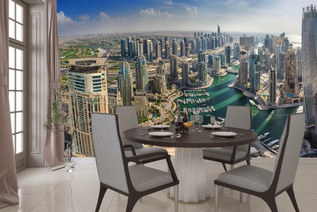 Paesaggio urbano di Dubai Fotomurali Skyline della città Carta Da Parati Camera da letto dellufficio Photo Decor