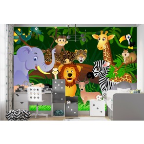 Animali di giungla Fotomurali Leone Giraffa Carta Da Parati Camera per bambini Foto Decorazione domestica