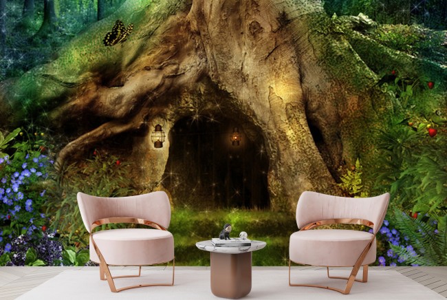 Magico Tree House Fotomurali Foresta Fairytale Carta Da Parati Ragazze Foto Decorazione domestica