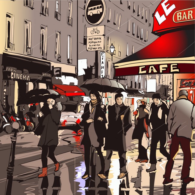 Illustrazione del caffè di Parigi Fotomurali Città Francia Carta Da Parati Cucina Photo Decor