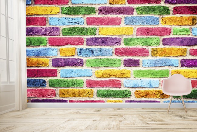 Rainbow Brick Texture Wall Wallpaper Wall Mural