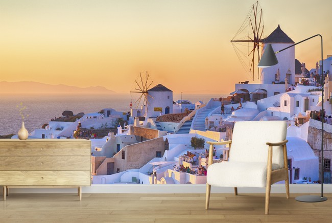 Santorini Tramonto Fotomurali Grecia Carta Da Parati Soggiorno Camera da letto Photo Decor