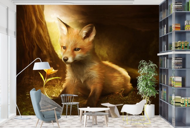 Little Fox and the Flower Wall Mural by Elena Dudina