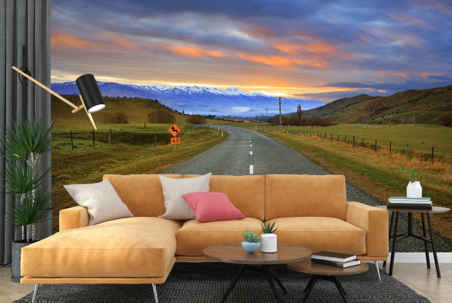 - Mountain Road Papier Peint Photo Paysage Orange Sky Papier peint Nouvelle-Zélande Décor photo