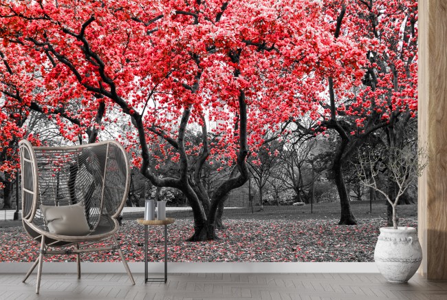 Red Flower Trees Wallpaper Wall Mural