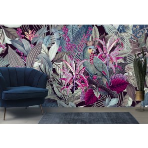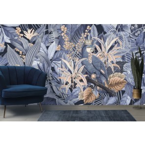 Peacock Jungle Blue Wall Mural by Andrea Haase