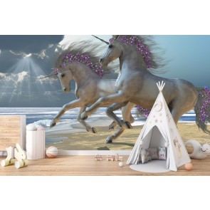 Unicornios Fotomurales Fantasía de cuento de hadas Papel Pintado Dormitorio de las niñas Foto Decoración para el hogar