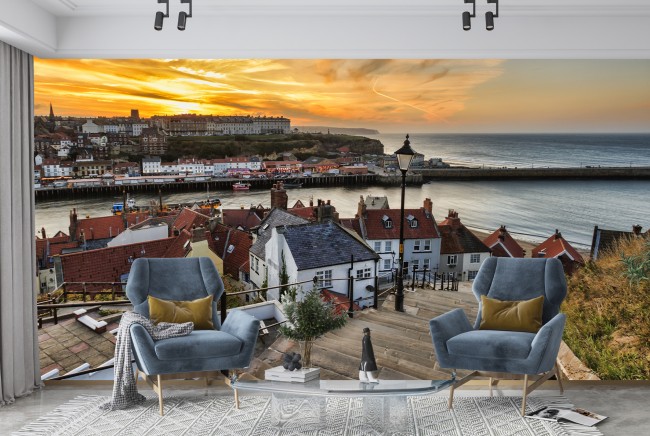 Whitby Harbour English Sunset Wallpaper Wall Mural