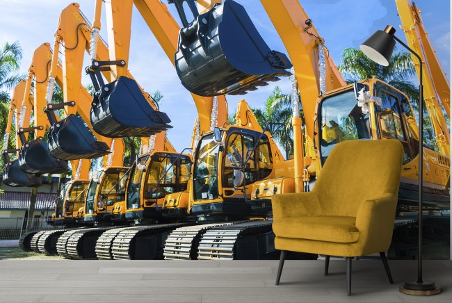 Bau Fototapete Gelbe Bagger Tapete Jungen Schlafzimmer Foto-Dekor